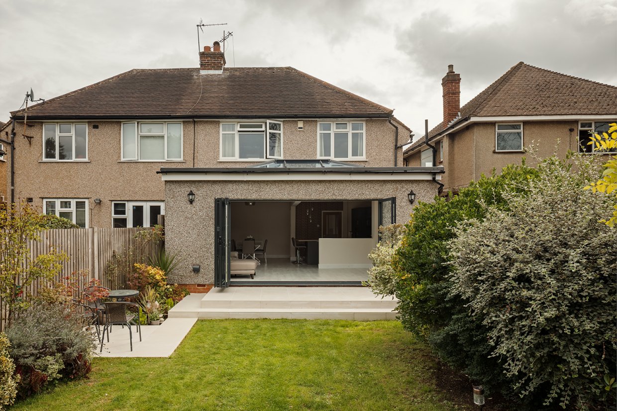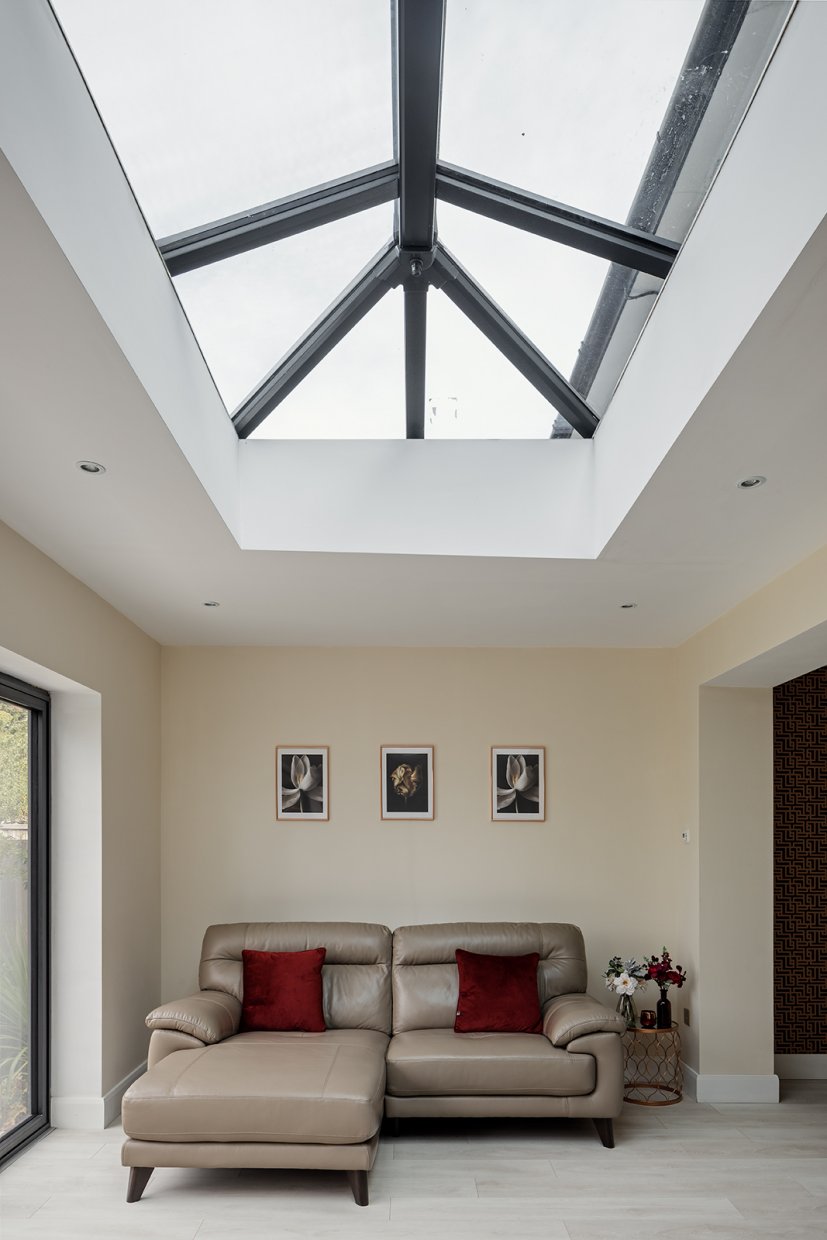 SINGLE STOREY REAR EXTENSION WITH LARD LANTERN TOO MAXIMISE LIGHT IN COMPACT SPACE FOR A GROWING FAMILY.